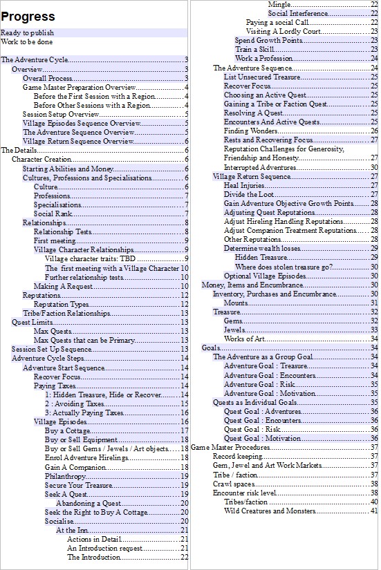 This new rule set is now entitled The Adventure Cycle. I’ve been a bit ruthless pulling out various mechanisms, to make available later as plugins. Here is the state of play for finishing up the text for the rules.